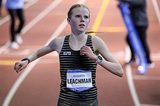 * Boerne Champion (TX) sophomore Elizabeth Leachman looks up at the clock after breaking the indoor 5k record